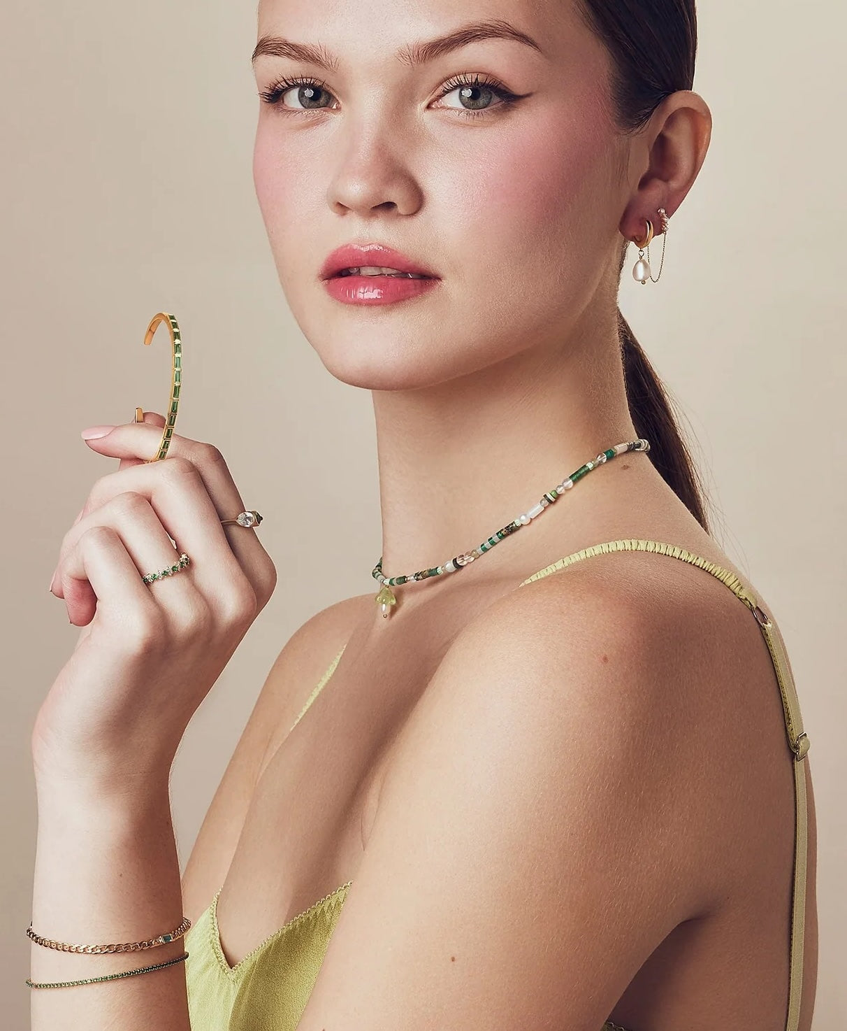 The art of the Gem Drops collection lies in blending current fashion aesthetics with enduring design principles to create pieces that resonate with contemporary tastes, focusing on trends like sculptural shapes, bold colours from natural gemstones and glass, mixed metals, and chunky forms for maximum impact