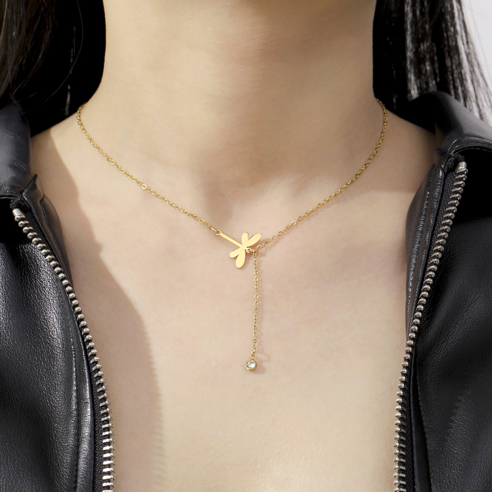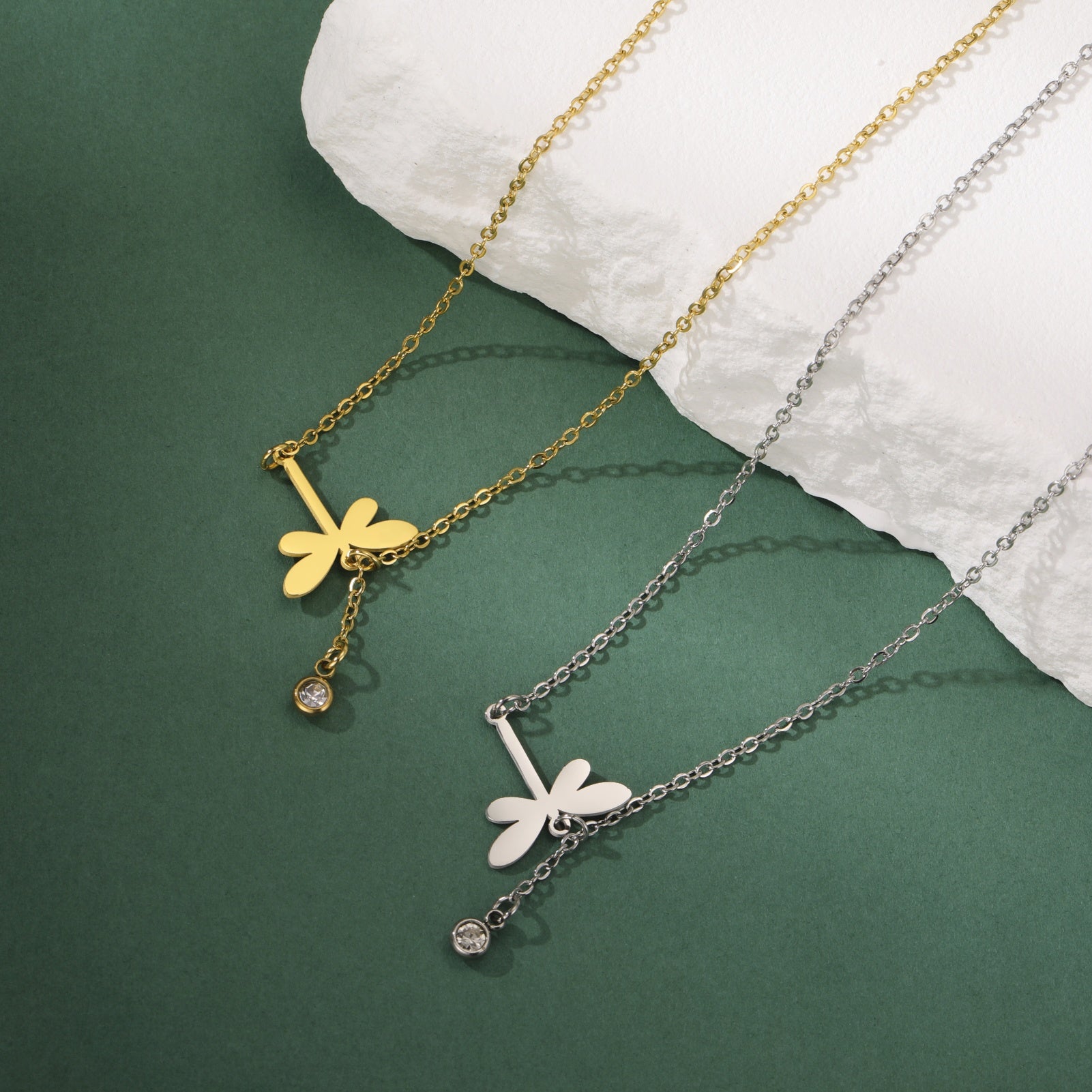 Let your style take flight with this playful stainless steel necklace, featuring a sparkling zircon drop crystal dragonfly pendant. Inspired by nature, it celebrates elegance and transformation, making it a delightful gift or a joyful addition to your daily ensemble. Perfect for those who love a touch of magic in their look!