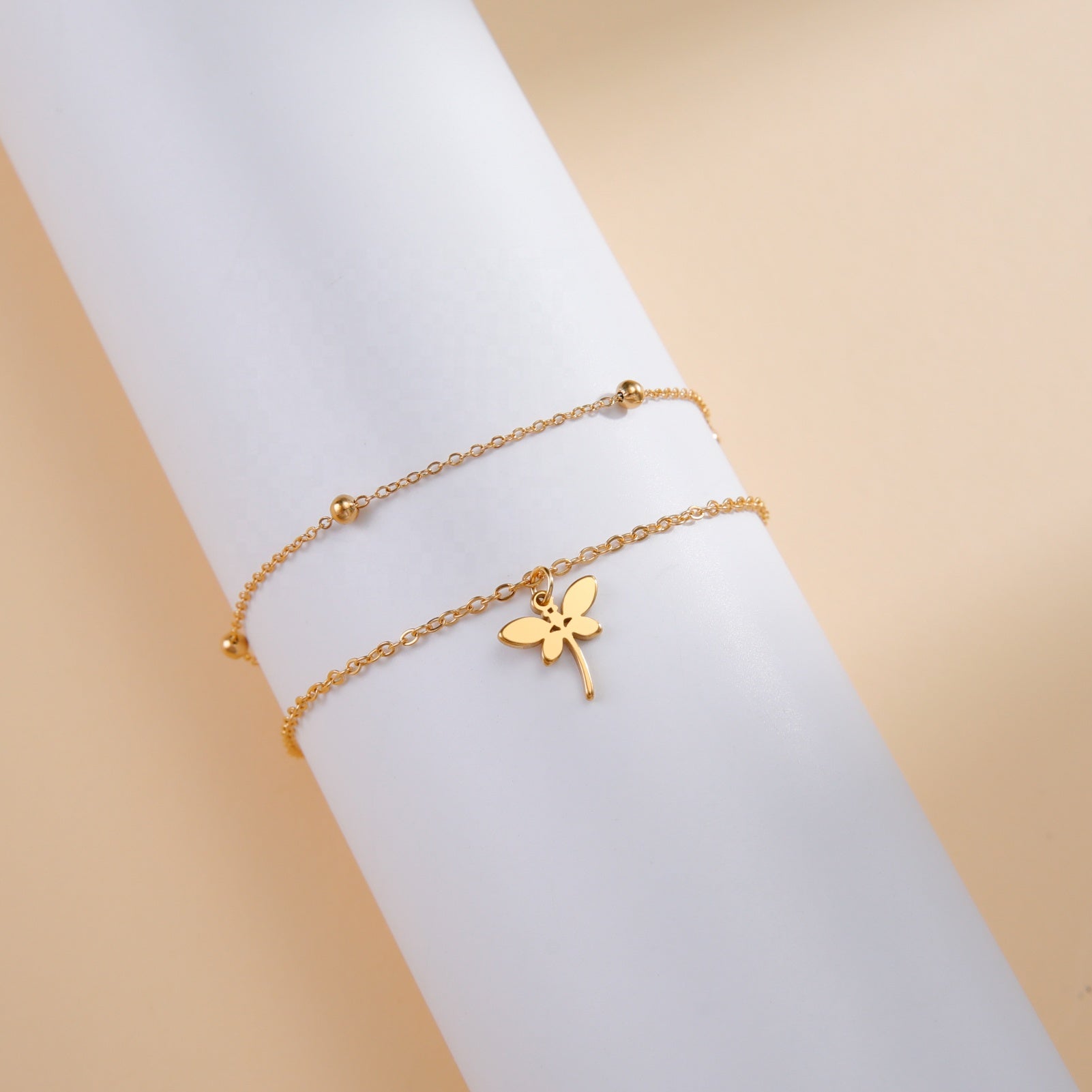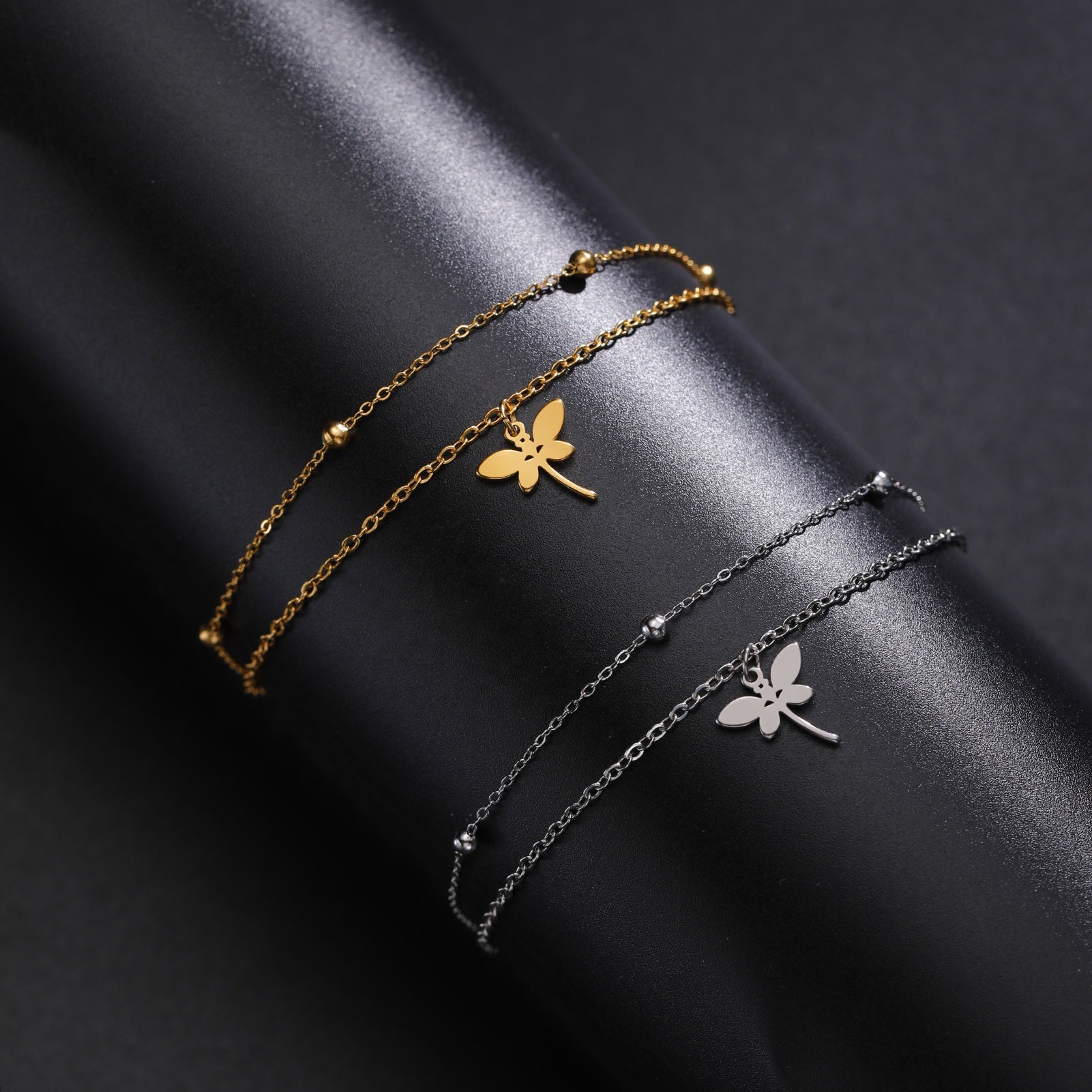 Add a touch of whimsy to your wrist with the Dragonfly Double Layer Chain Bracelet. Crafted from high-quality stainless steel and finished with 18K Gold and Silver PVD plating, this playful piece stays dazzling no matter where your adventures take you — from morning showers to seaside escapes. Waterproof, tarnish-free, and hypoallergenic, it’s perfect for everyday magic with a sparkling twist!