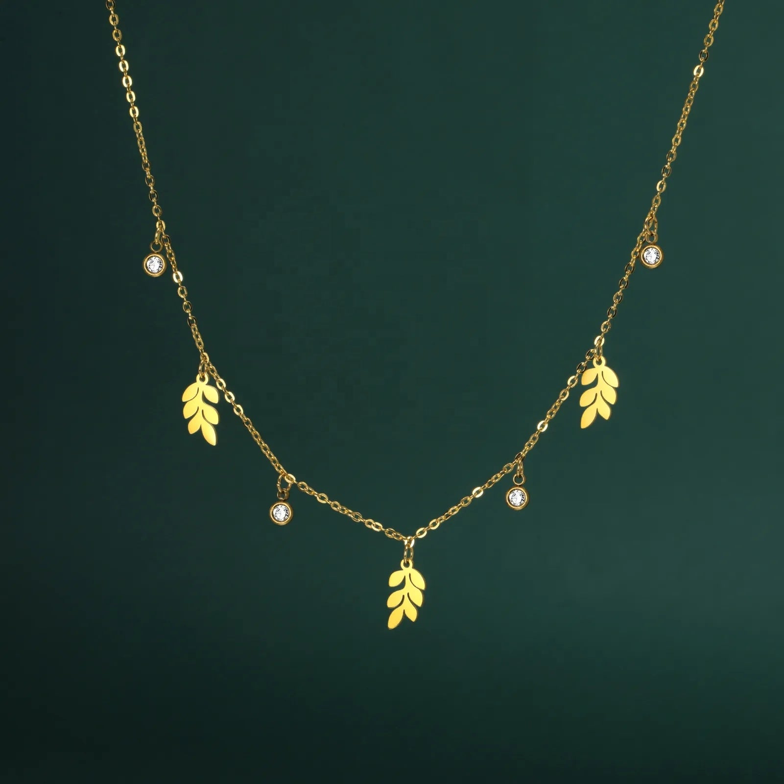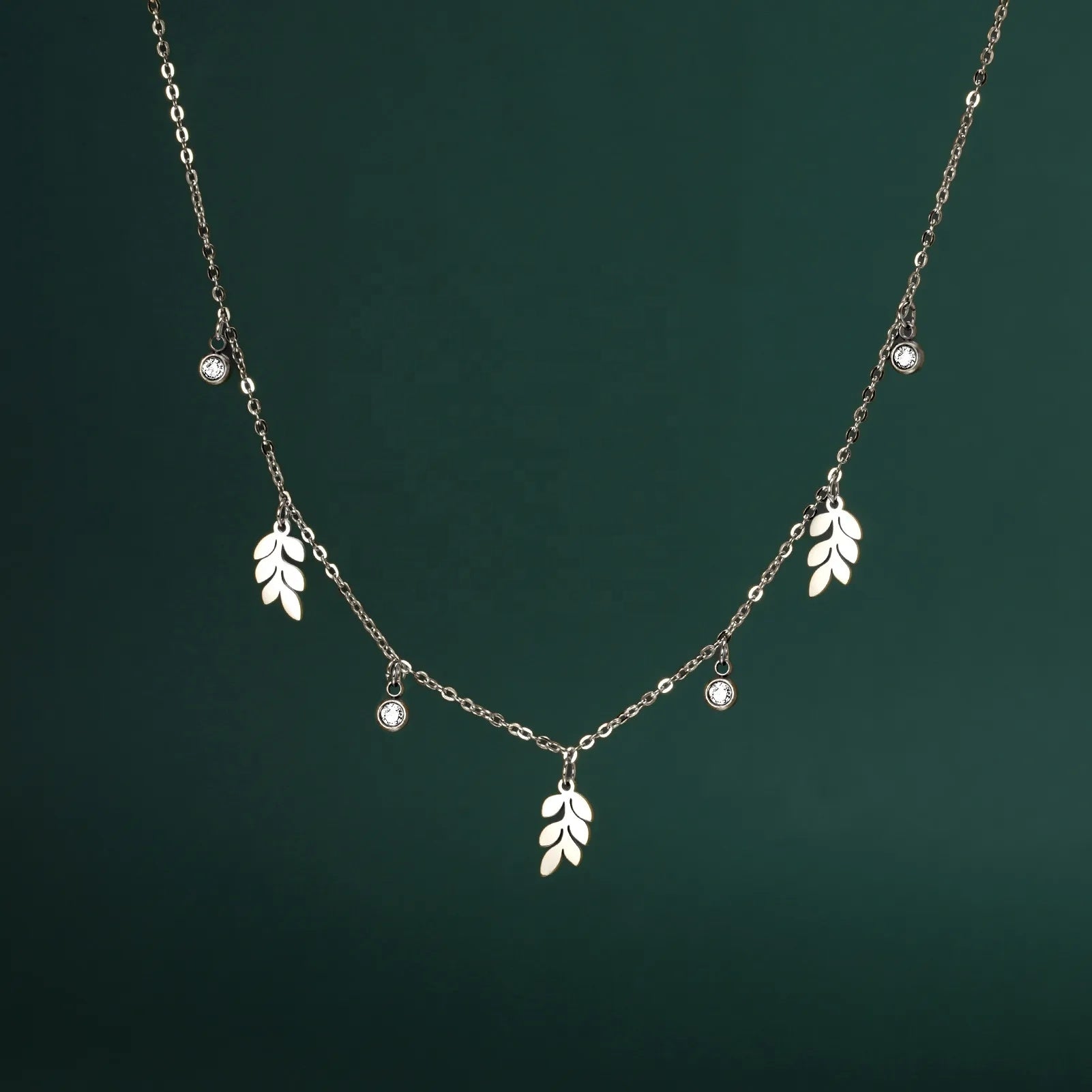 The Leaves and Drop Gems Necklace combines nature-inspired elegance with expert craftsmanship. Made from high-quality 316L Stainless Steel with premium 18K Gold and Silver PVD plating, this necklace offers lasting durability and resistance to water and tarnish. Its clear zircon gems adds refined brilliance, while the lightweight, hypoallergenic design ensures comfort for sensitive skin. Perfectly suited for everyday wear and special occasions, this necklace delivers both luxury and longevity, embodying the thoughtful selection behind Gem Drops’ commitment to quality and timeless style.