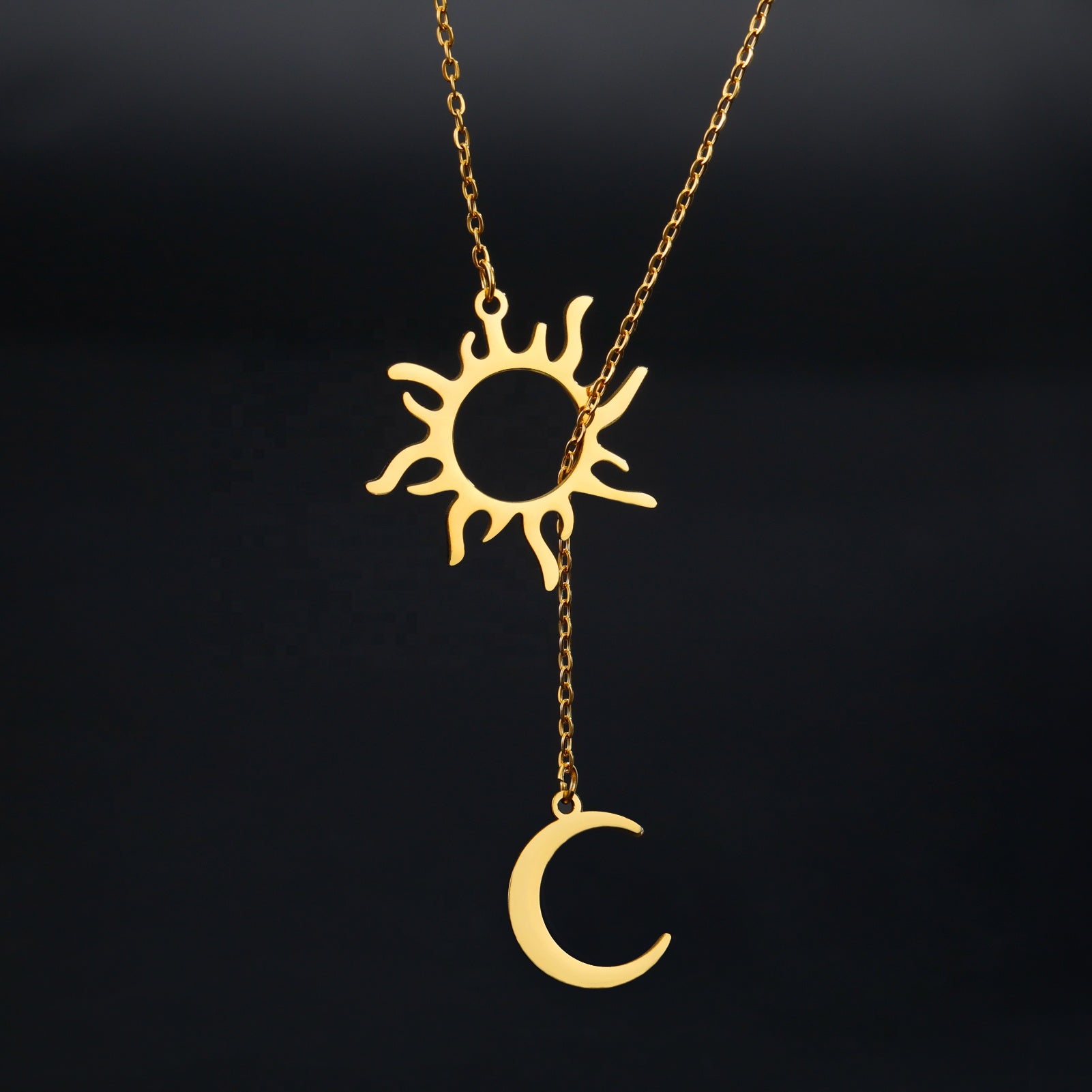 Add a celestial sparkle to your style with the Sun and Moon Pendant Necklace. Featuring an astrological galaxy theme, this playful clavicle chain combines cosmic charm with everyday durability. Made from premium 316L Stainless Steel plated with 18K Gold or Silver PVD, it’s hypoallergenic and tarnish-free - perfect for sensitive skin and seaside adventures. Lightweight yet built to last, this necklace is your timeless companion for bright days and dreamy nights.